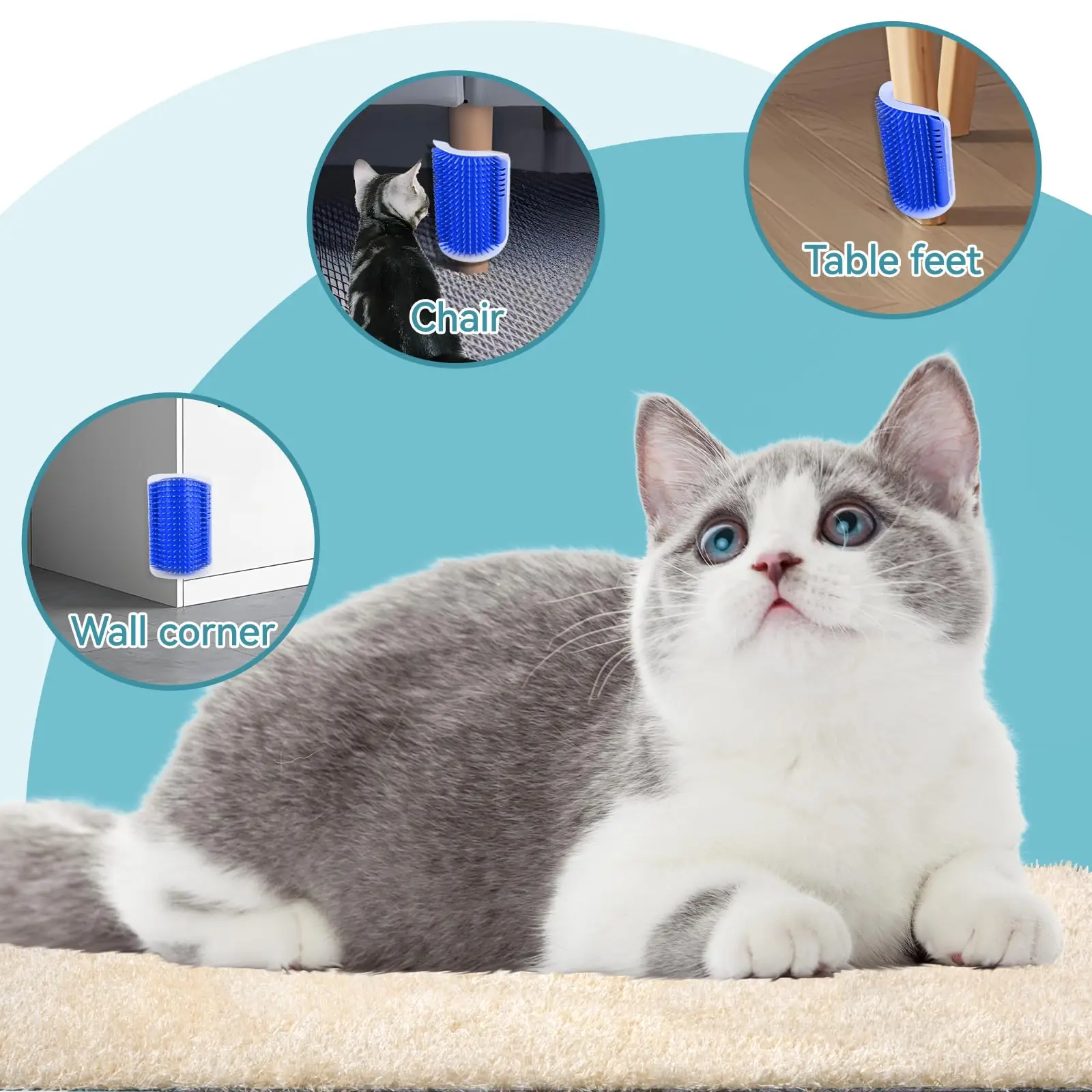 Safe and Comfortable - This cat corner self groomer is made of plastic base and softer plastic bristles, ensure gentle massaging and grooming without painful remove fur or scratch the cat's skin. Reduces tangling and shedding of loose hair, allowing cats to massage themselves comfortably.