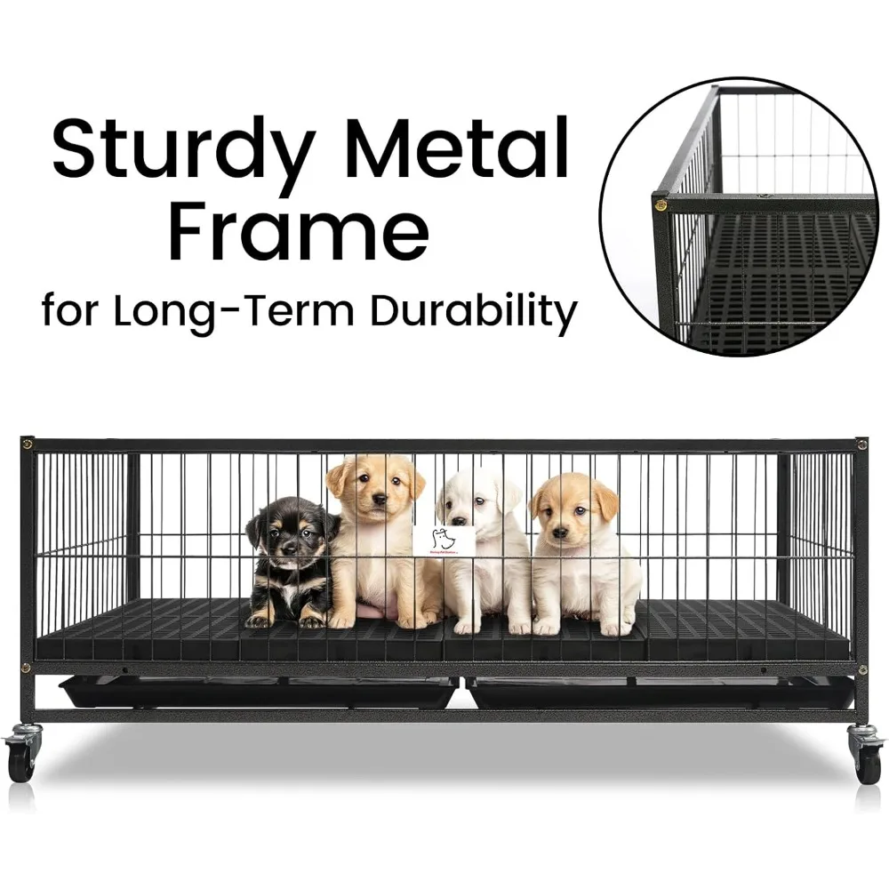 • Why Choose a Metal Dog Whelping Box: Because your dog mom and her newborn pups deserve the safest, cleanest start possible. Unlike soft fabric or flimsy plastic options, this sturdy metal whelping box offers a secure and stable environment—perfect for protecting fragile puppies and tired moms during recovery. It’s built with lockable 360° wheels, making it easy to move between rooms or even outdoors. Plus, the removable plastic floor grid and tray catch fur, food, and waste while being gentle on tiny paws. Easy to clean, built to last, and made for comfort—this is a smart, long-term investment for responsible pet parents.