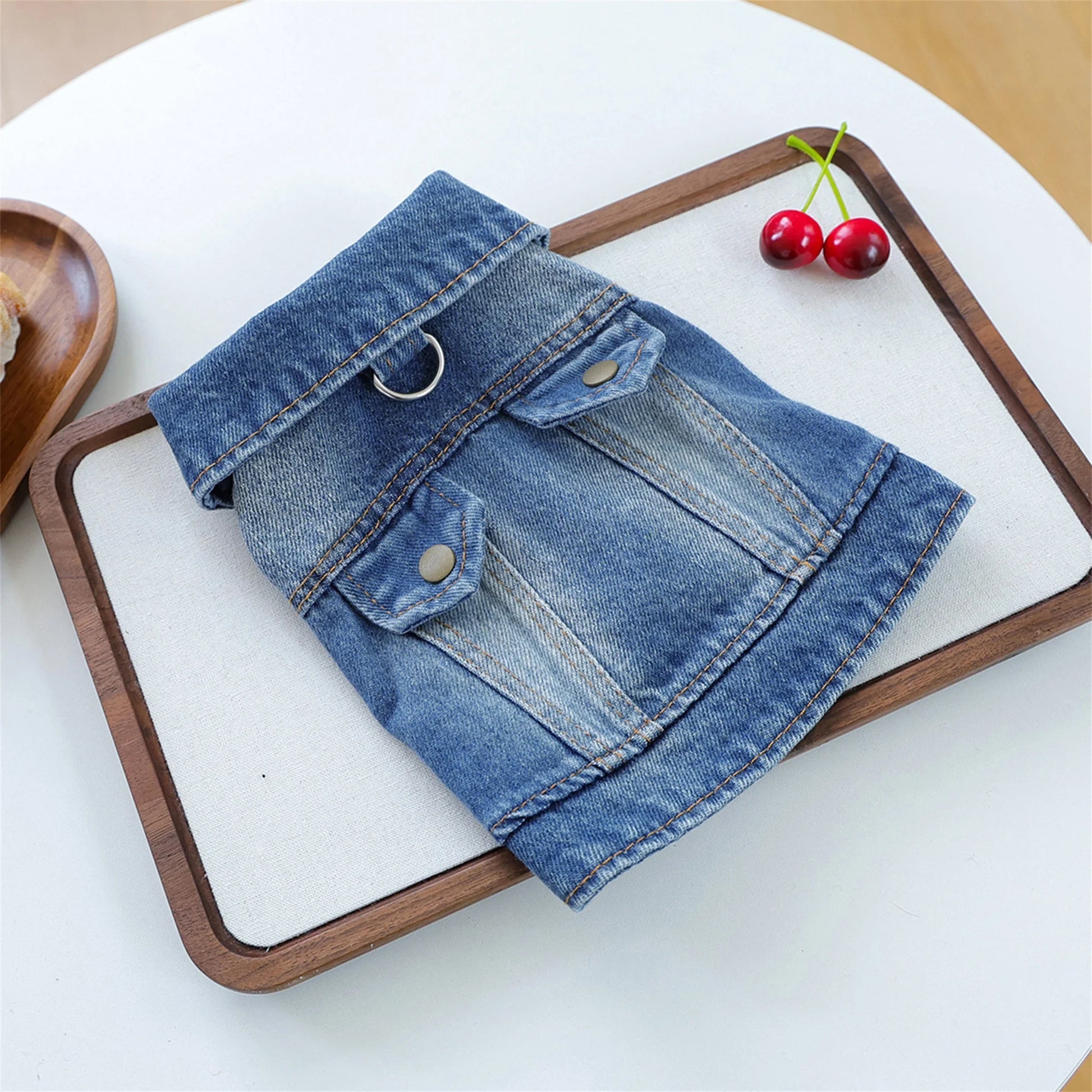 Blue Retro Dog Jeans Jacket Trendy Denim Coat for Small Medium Girl Boy Dogs