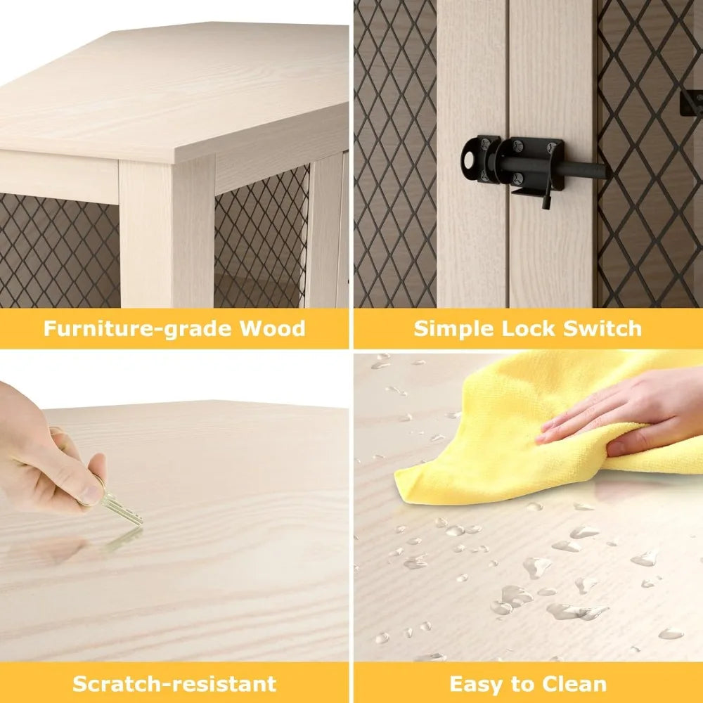 - Space Saving Corner Design: Our dog crate furniture features a unique corner design that optimizes your living space, saving up to 35% more room compared to square dog crate. Perfect for rooms with limited space, the dog kennel furniture seamlessly fits into any corner, creating a dedicated and efficient space for your dog.