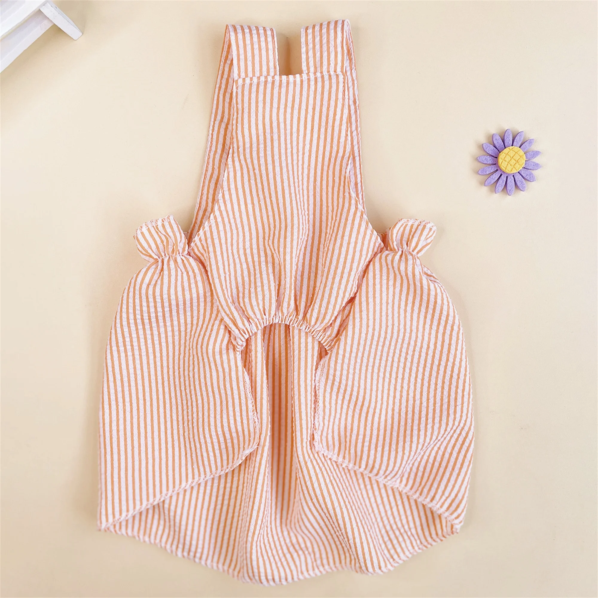 The dog wedding dress with striped print, cute bow, spaghetti straps and sleeveless, bright colors; It adds sweetness to your pet, suitable for dogs and cats