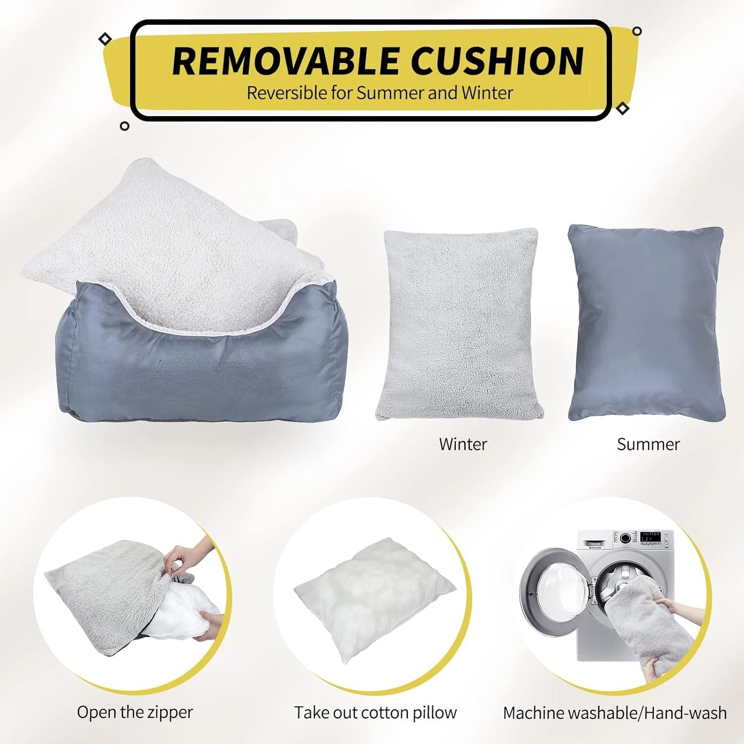 - 2 Storage Pockets and 2 Sided Cushions : There are large capacity storage bags on both sides of dog booster seats for small dogs. It's very convenient for you to put pet daily necessities to save space. The cushion is two-sided. One side is fluff, the other side is Oxford fabric.Very suitable for dog carriers & travel products and all season use.
