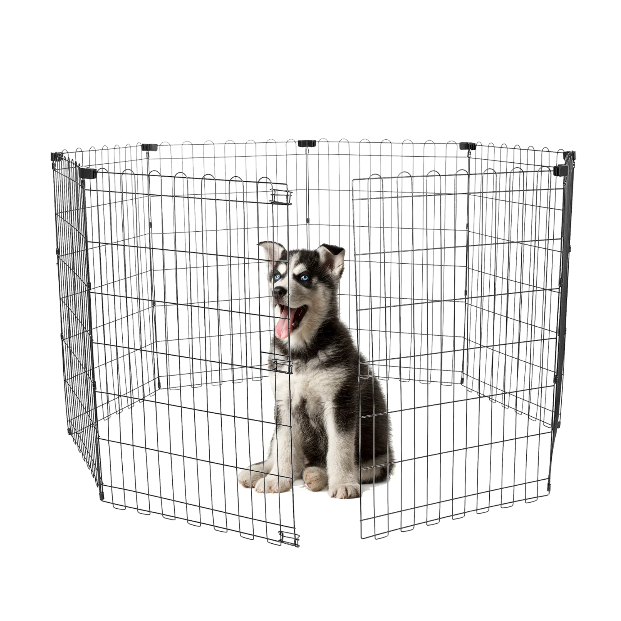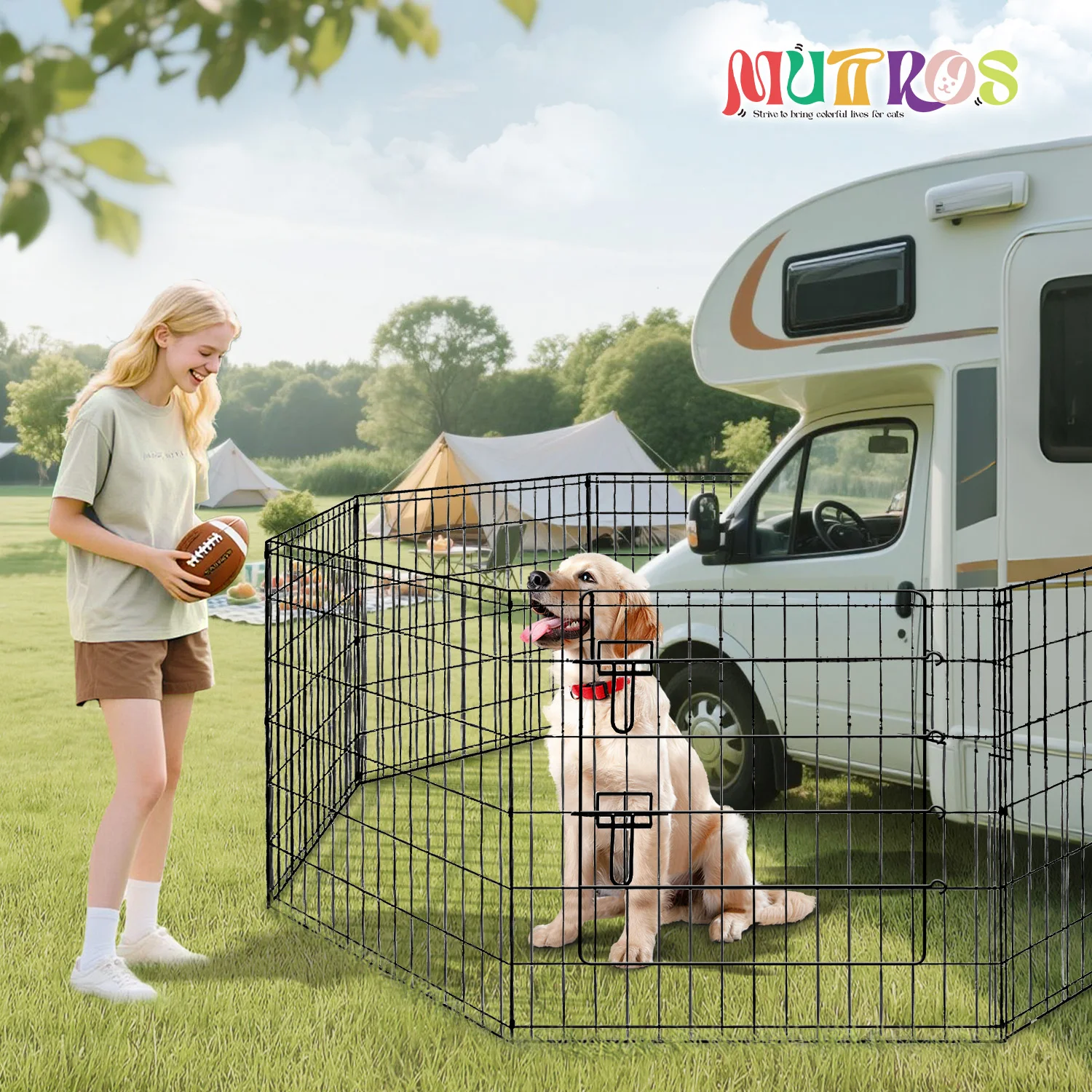 Foldable Metal Dog Playpen for Indoor/Outdoor, DIY Pet Dog Fence Exercise with Doors, Pet Puppy Playpen for Yard Easy to Assemble