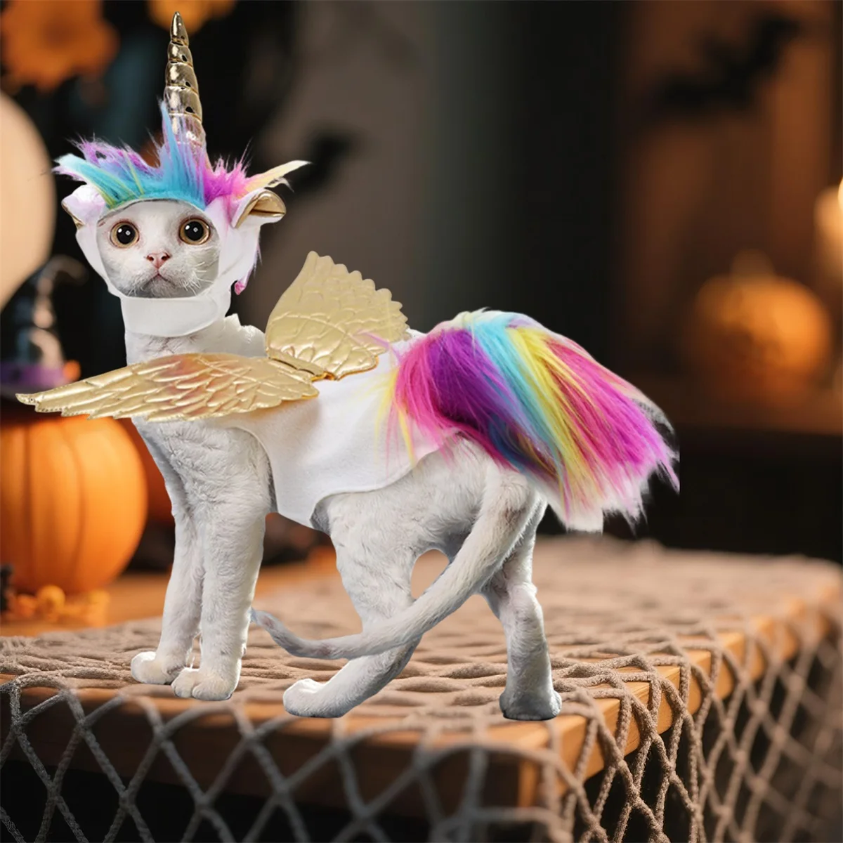 Funny Pet Cat Unicorn Costume Set with Horn Wings and Rainbow Mane - Adorable Cosplay Outfit for Halloween Party Supplies and