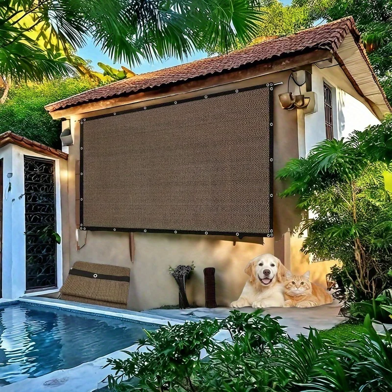 The warm brown tone blends with the nature of patio green plants and wooden furniture, adding a harmonious beauty to the outdoor space.The choice of a variety of cute shapes makes the net cover the finishing touch to the pet activity area - whether it is casual's rectangular style, playful arc design, or a fun shape with pet paw prints and bone patterns, you can freely match it according to the patio style grids and pet stylish.When your furry child plays under the exclusive sunshade net cover, it is both a careful treasure and a smart scenery in the courtyard.