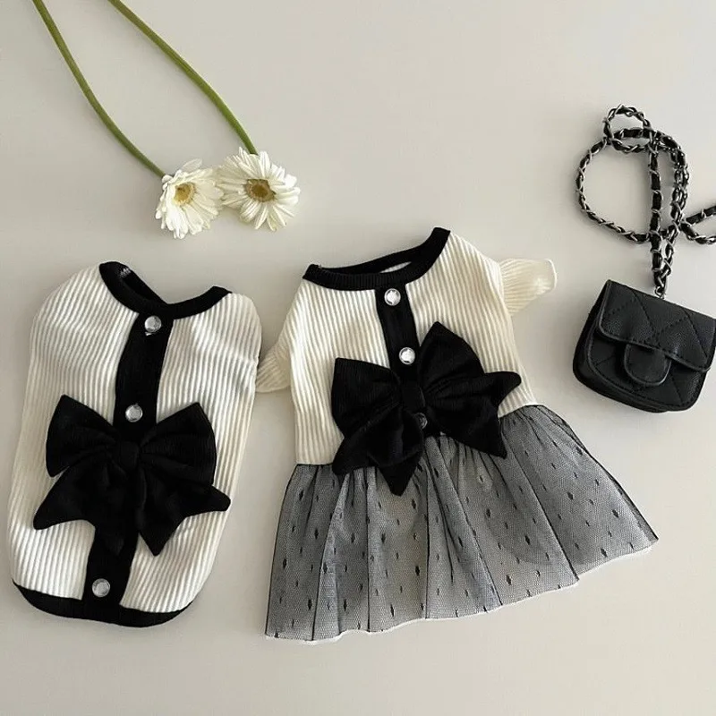 Luxury Dog Dress for Small Dogs Summer Puppy Clothes Bow Lace Dog Skirt Black White Dog T Shirt Girls Dog Costume Chihuahua Vest