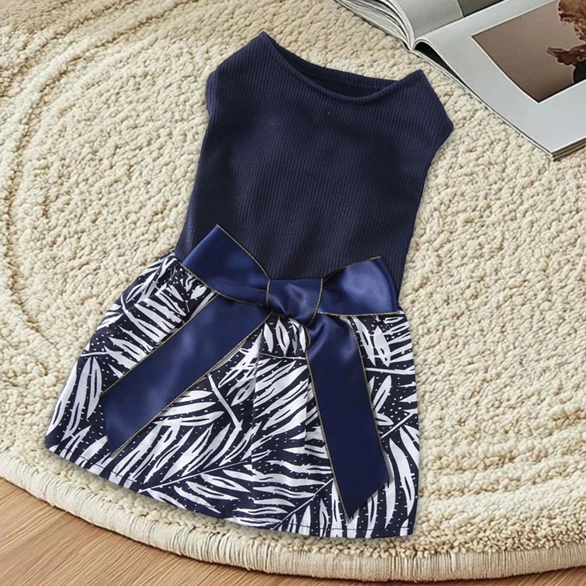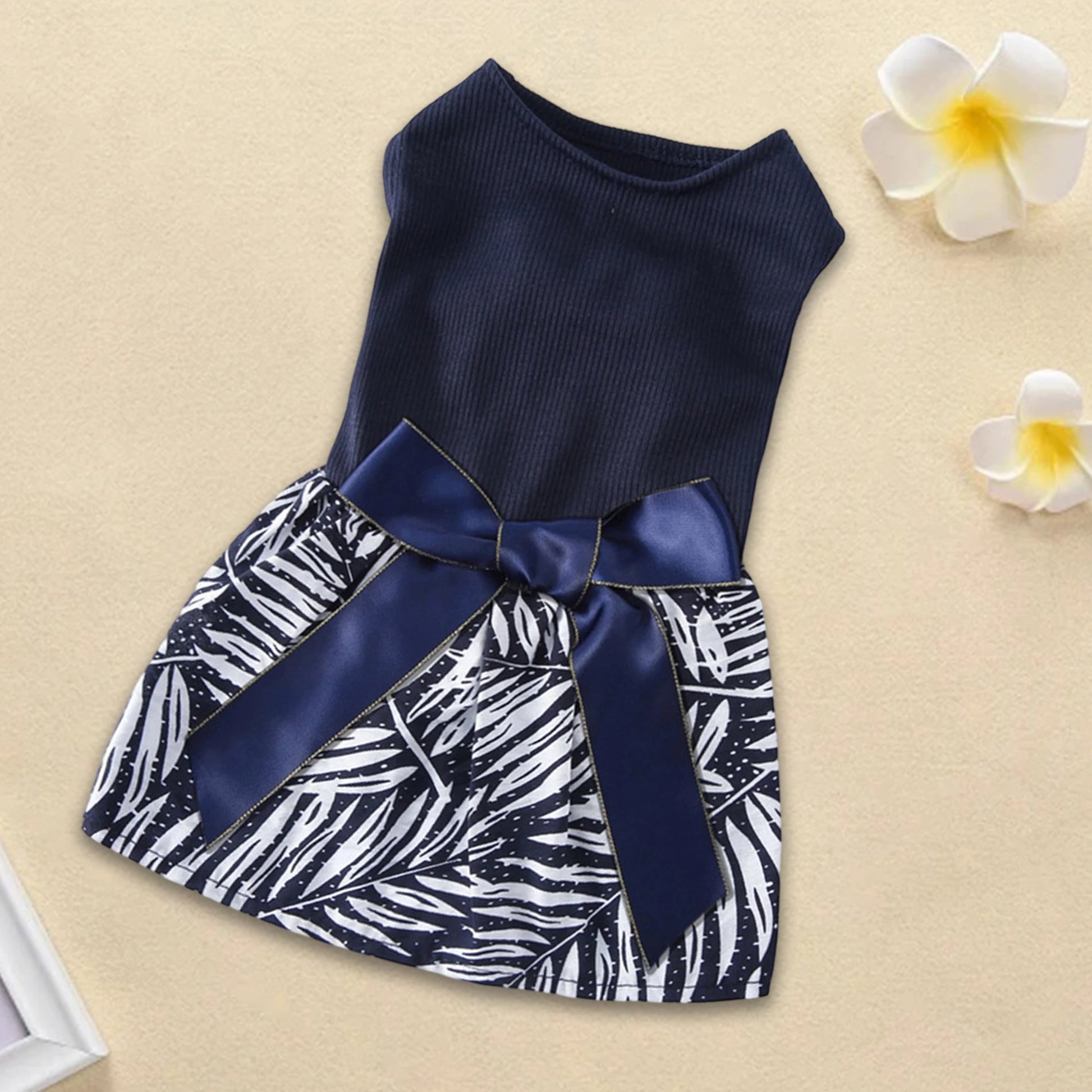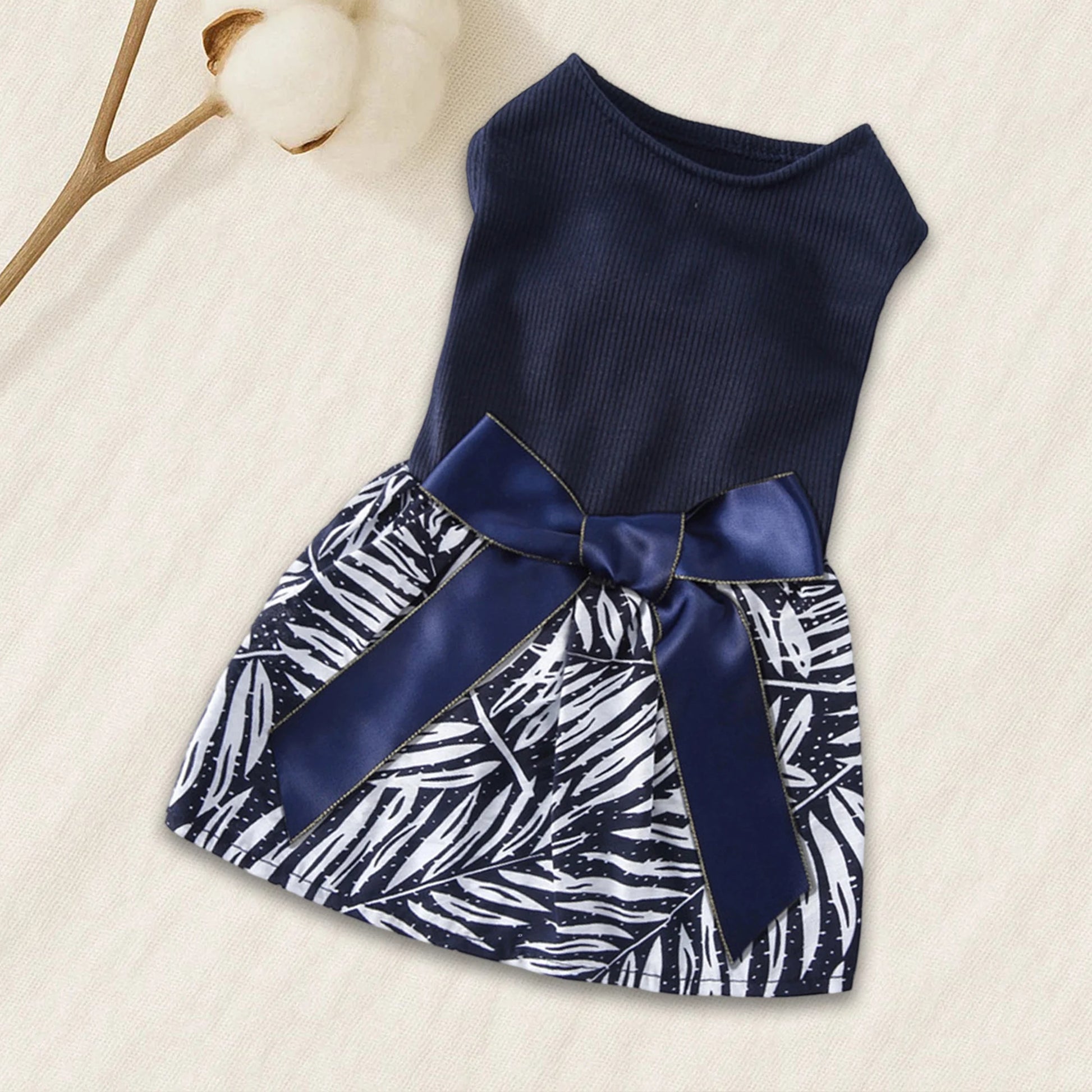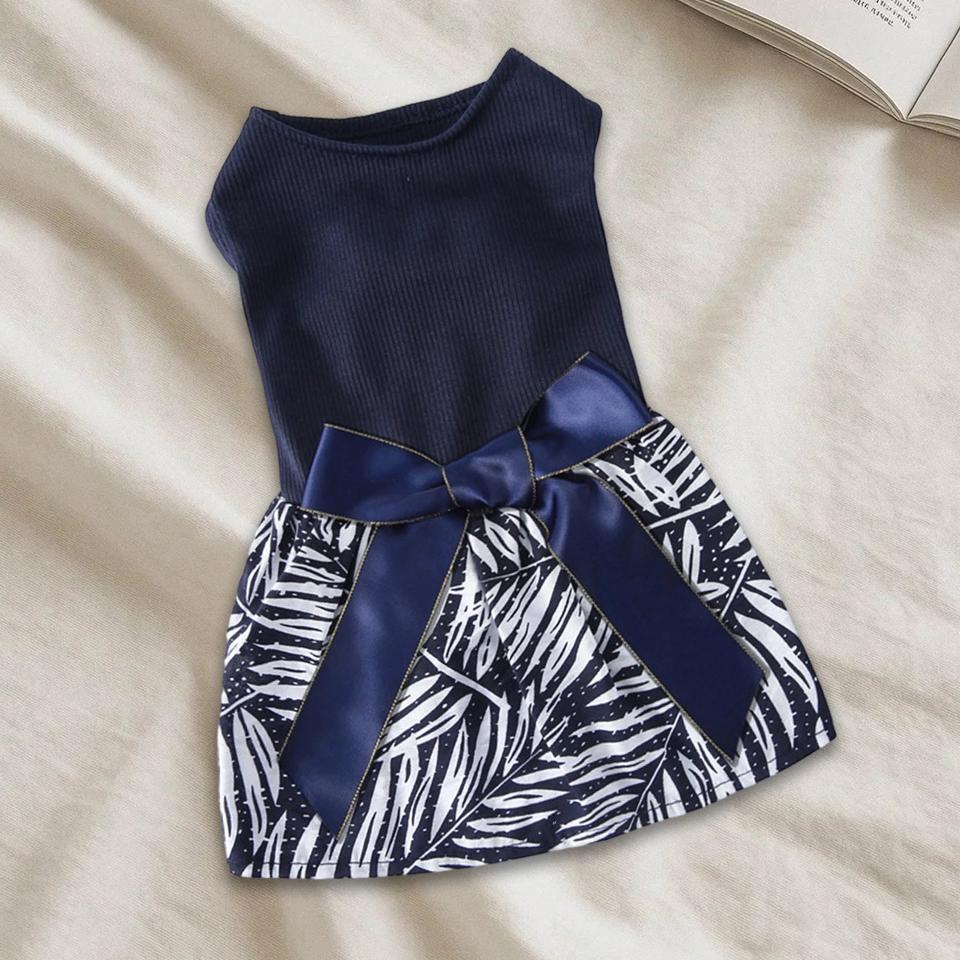 Dog Formal Dress Elegant Leaf Print Cat Party Dress Small Medium Dog Shirt Outfit for Chihuahua Yorkie Bichon Frise