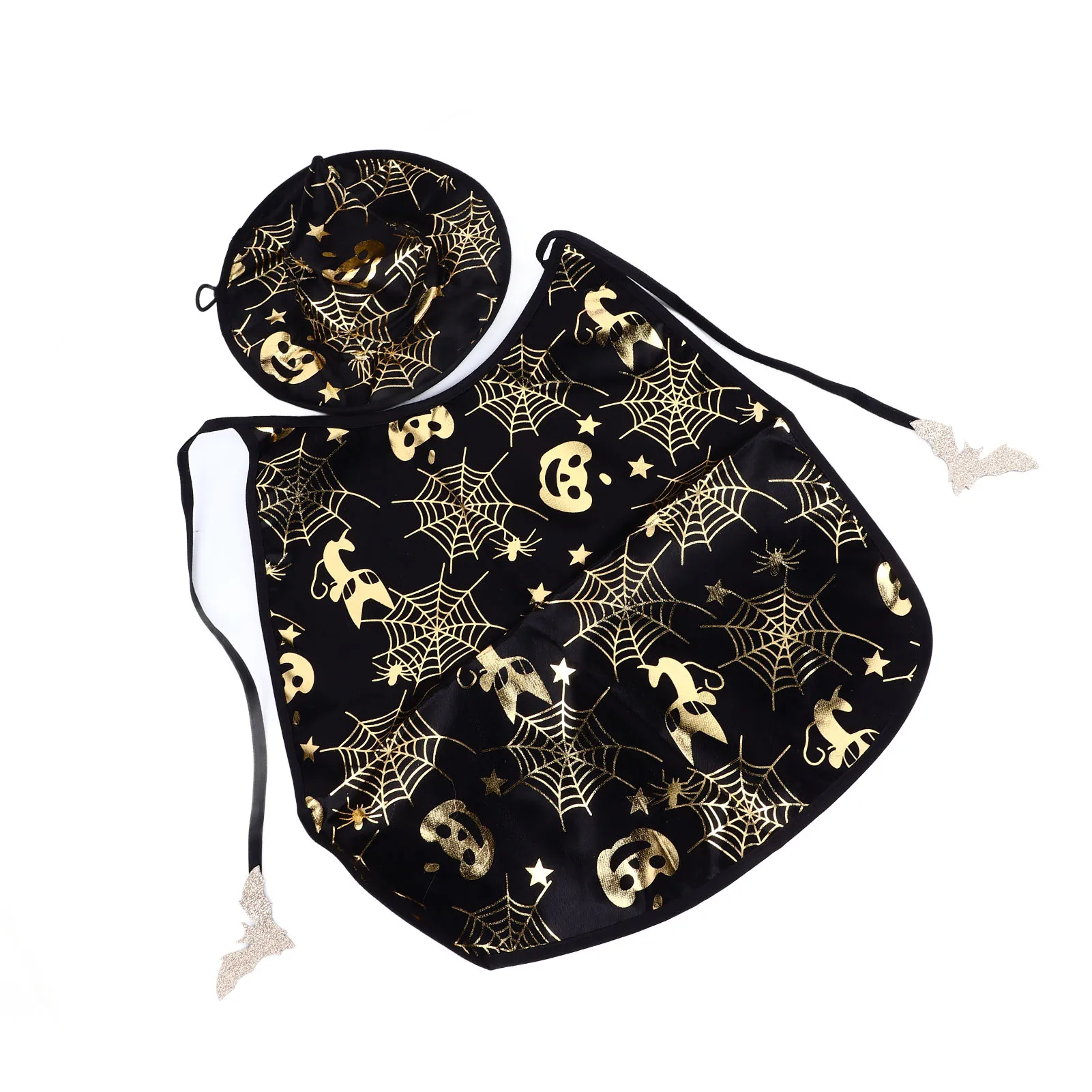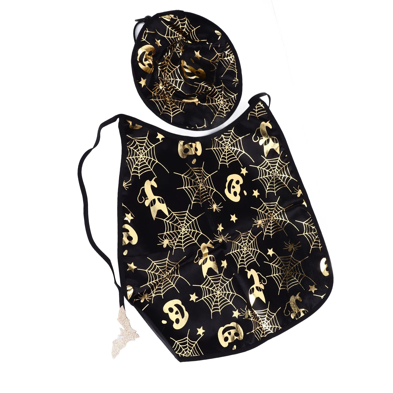 Halloween Pet Pumpkin Cape Set Spiderweb Pattern Adjustable Mysterious Pet Costume Set for Pet Gatherings