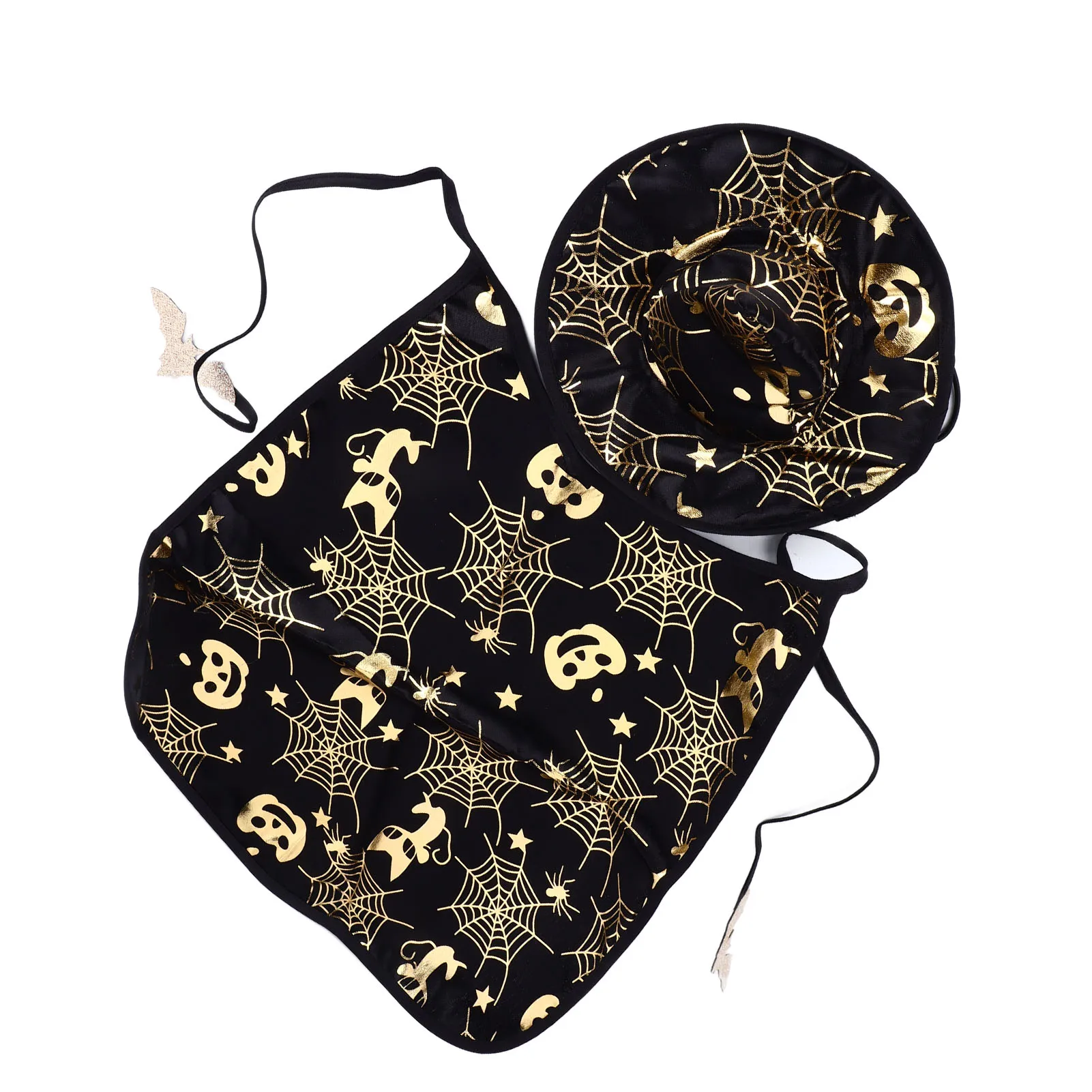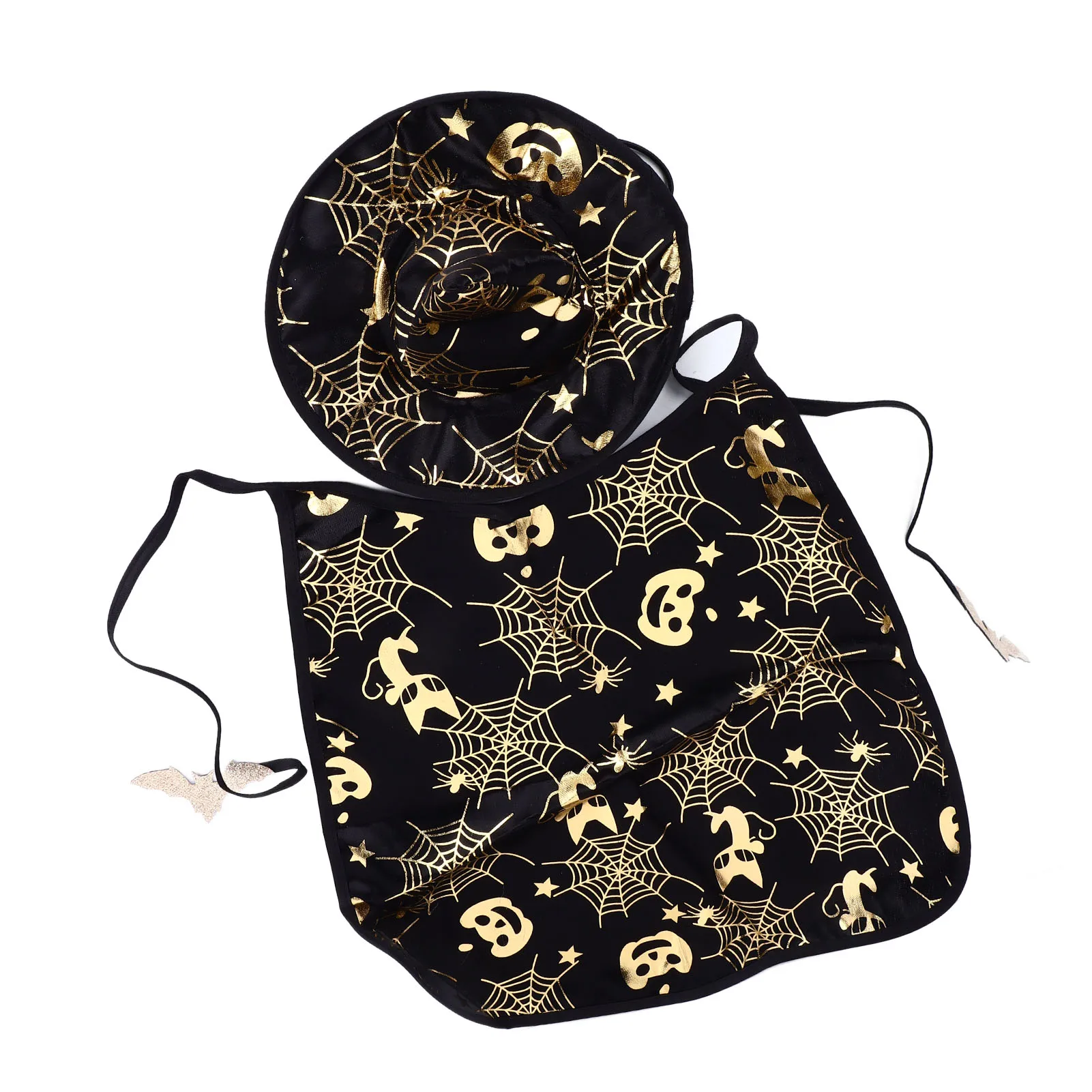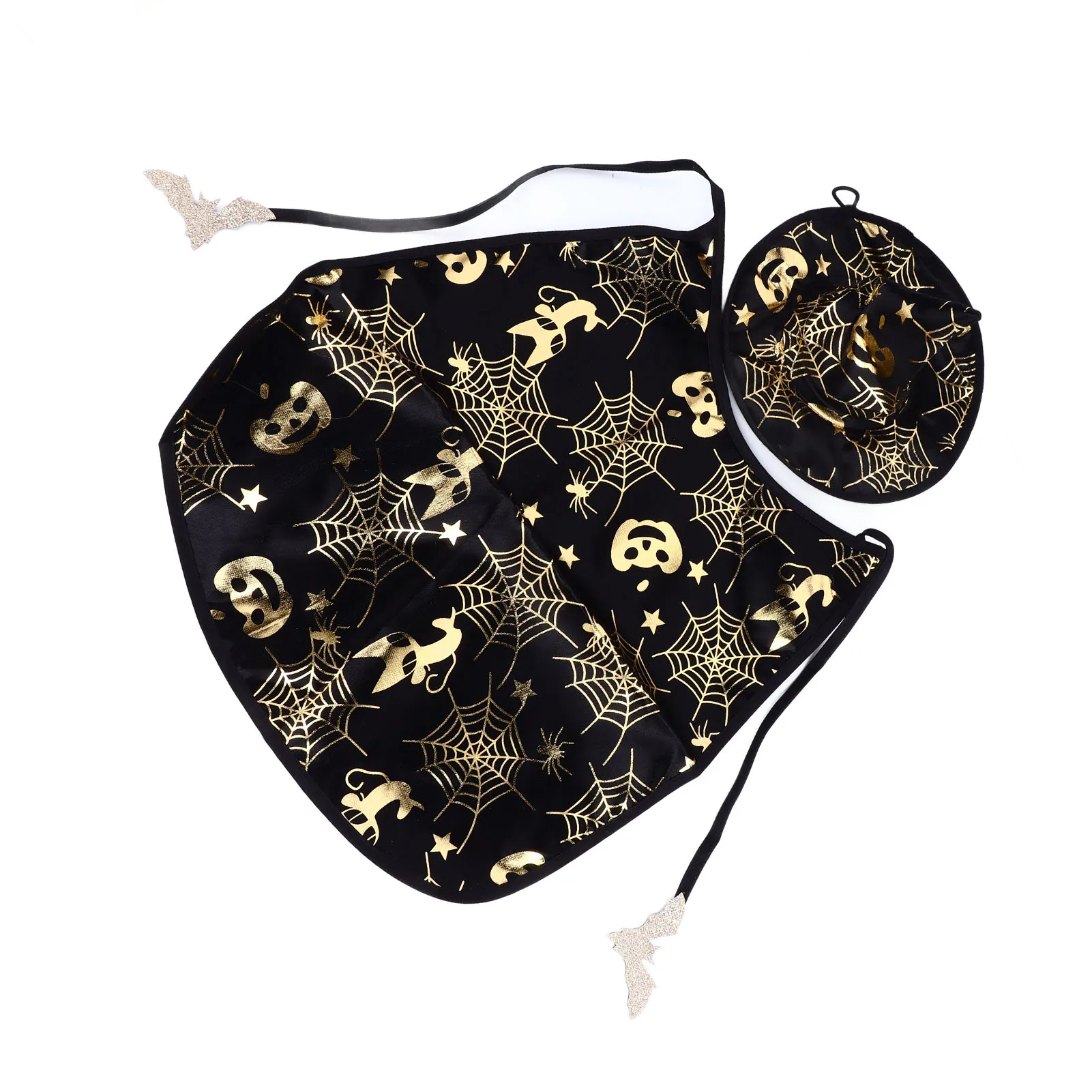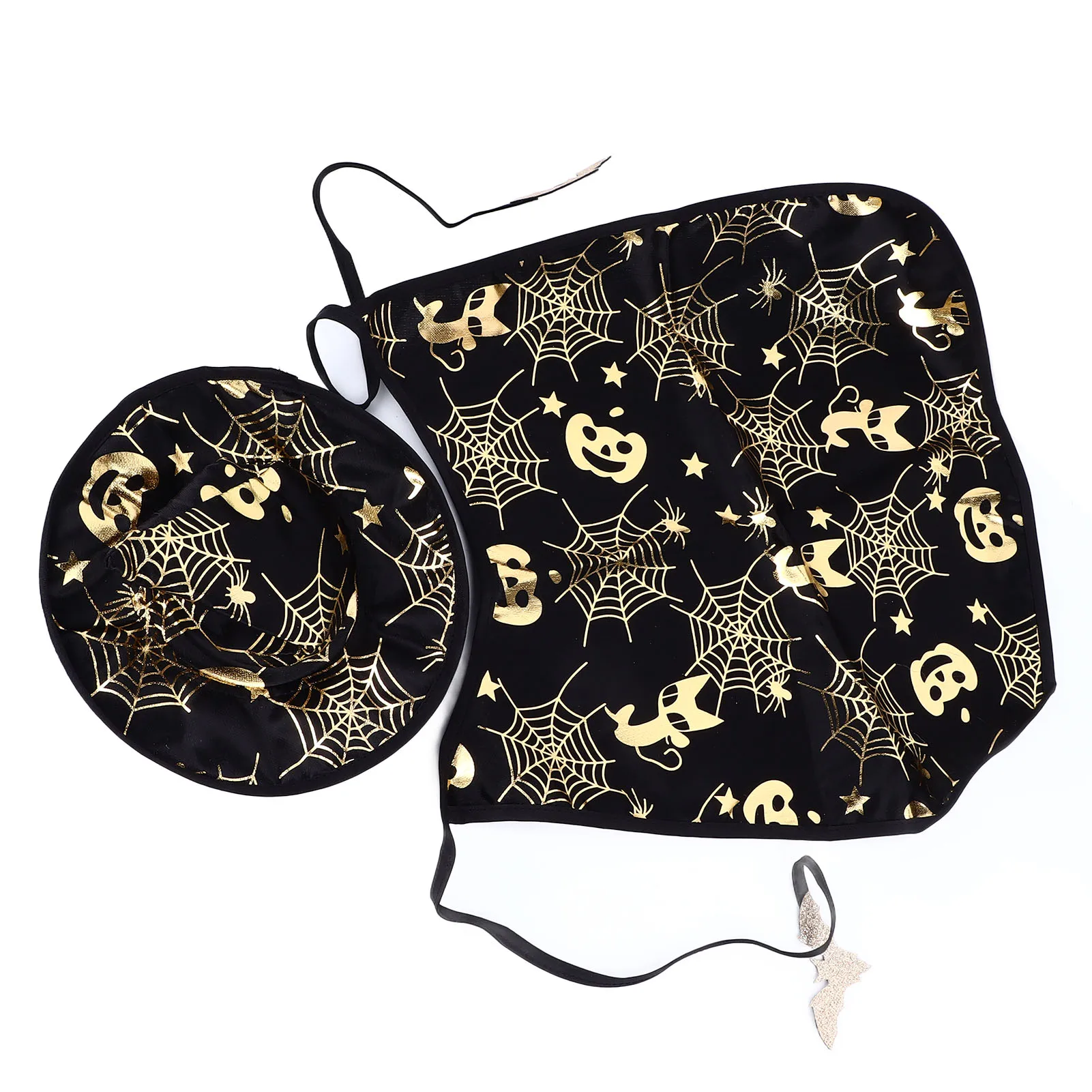 Pet Halloween Costumes Pumpkin Spiderweb Pattern Cape Set Polyester Adjustable Mysterious Pet Cloak and Hat Set for Parties
