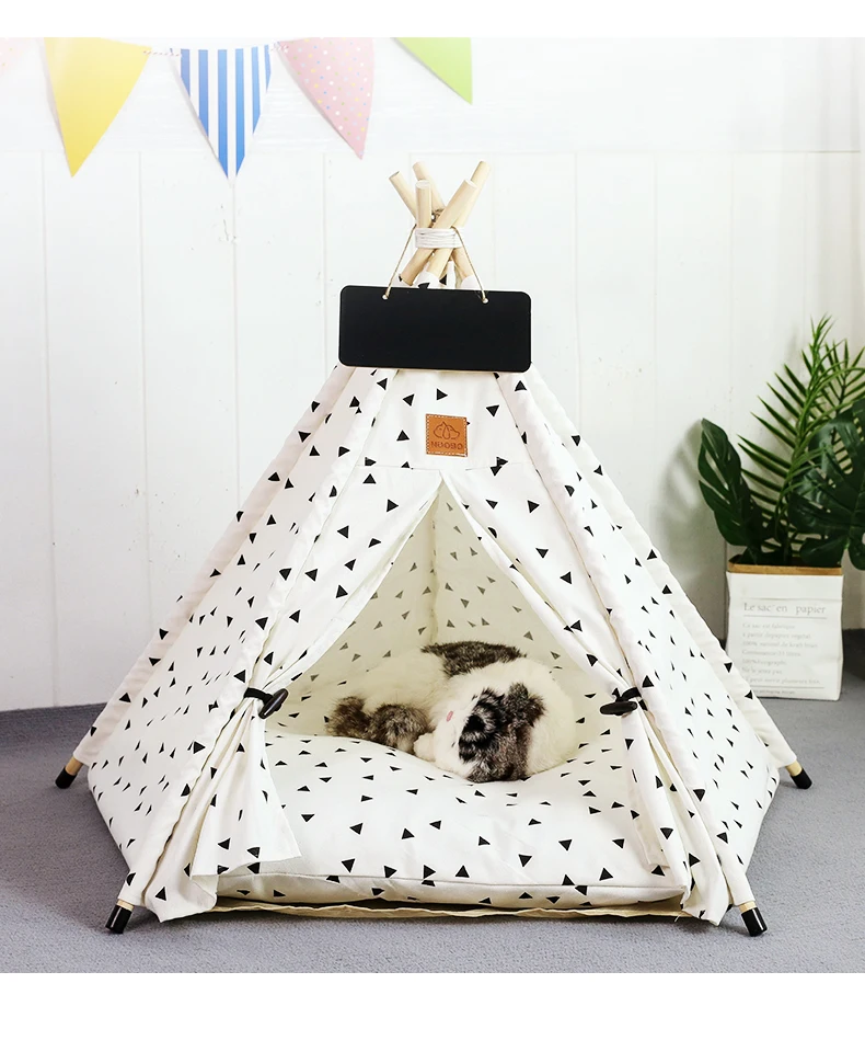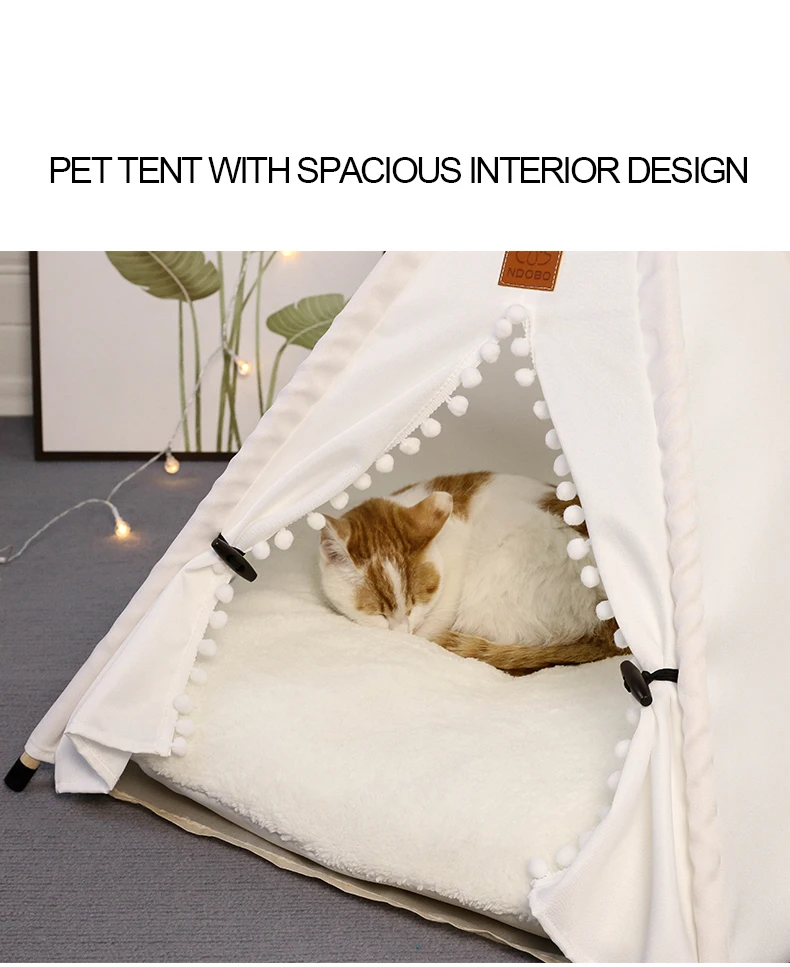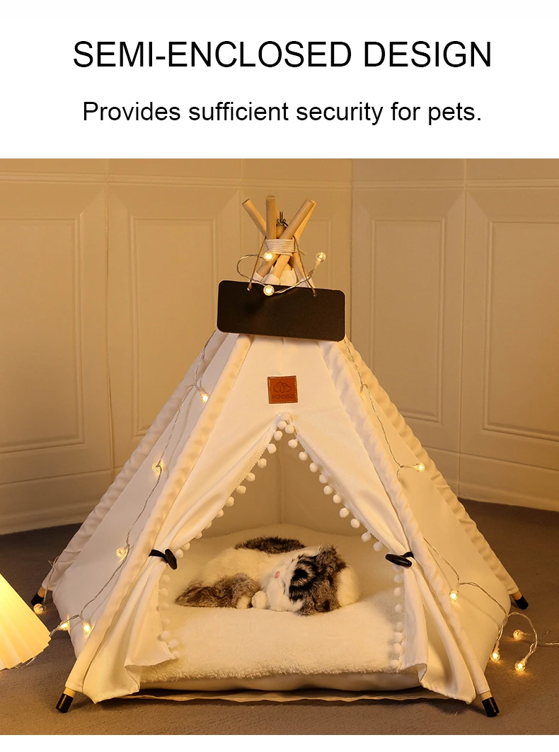 Winter Pet Teepee Tent w/ Dual-Sided Cushion, Warm Plush Side, Anti-Slip Base, Stabilizers, Fully Washable - Ideal for Dogs cats