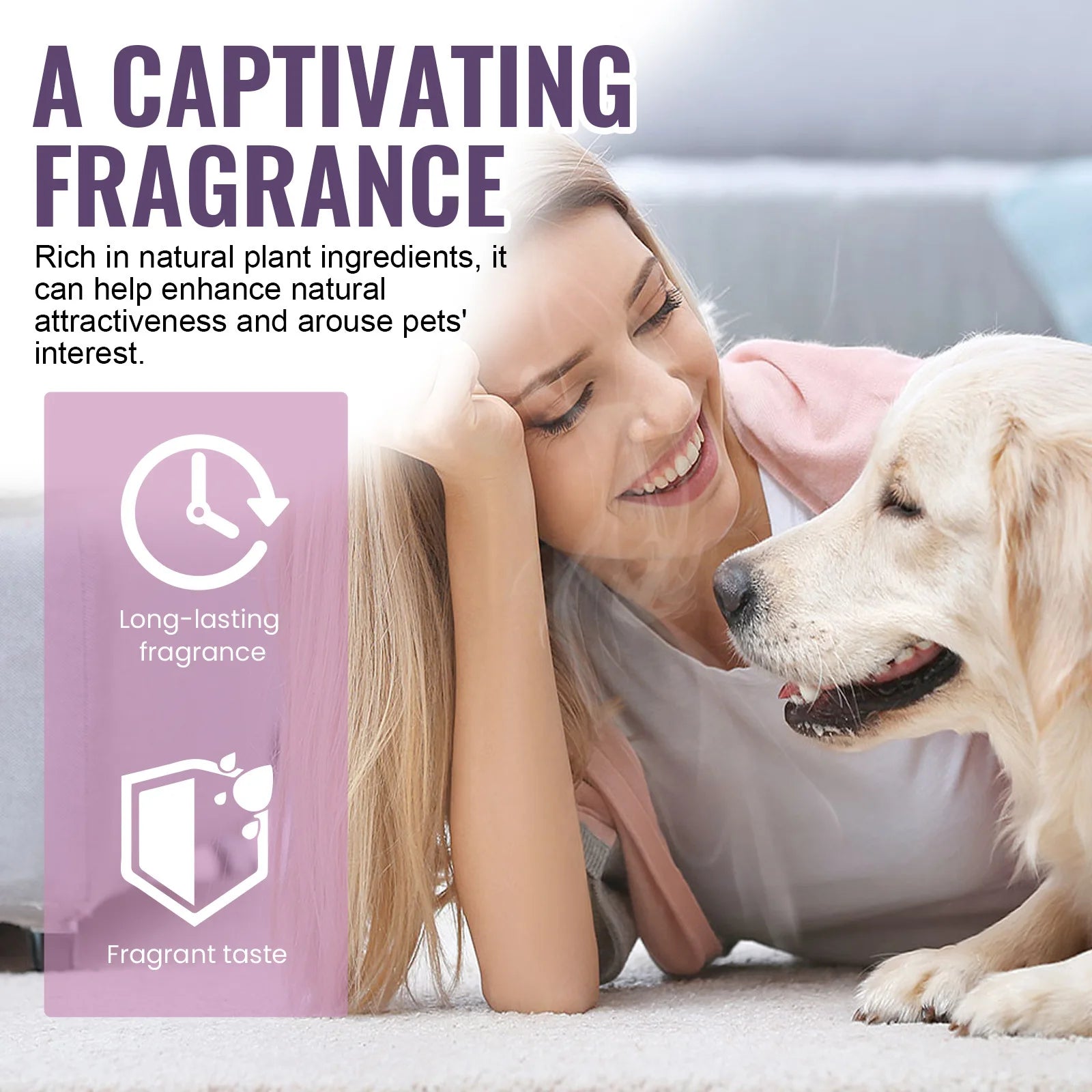 Apply this product evenly to areas such as arms or wrists to spread the fragrance. Pets will be attracted to it when they smell the fragrance.