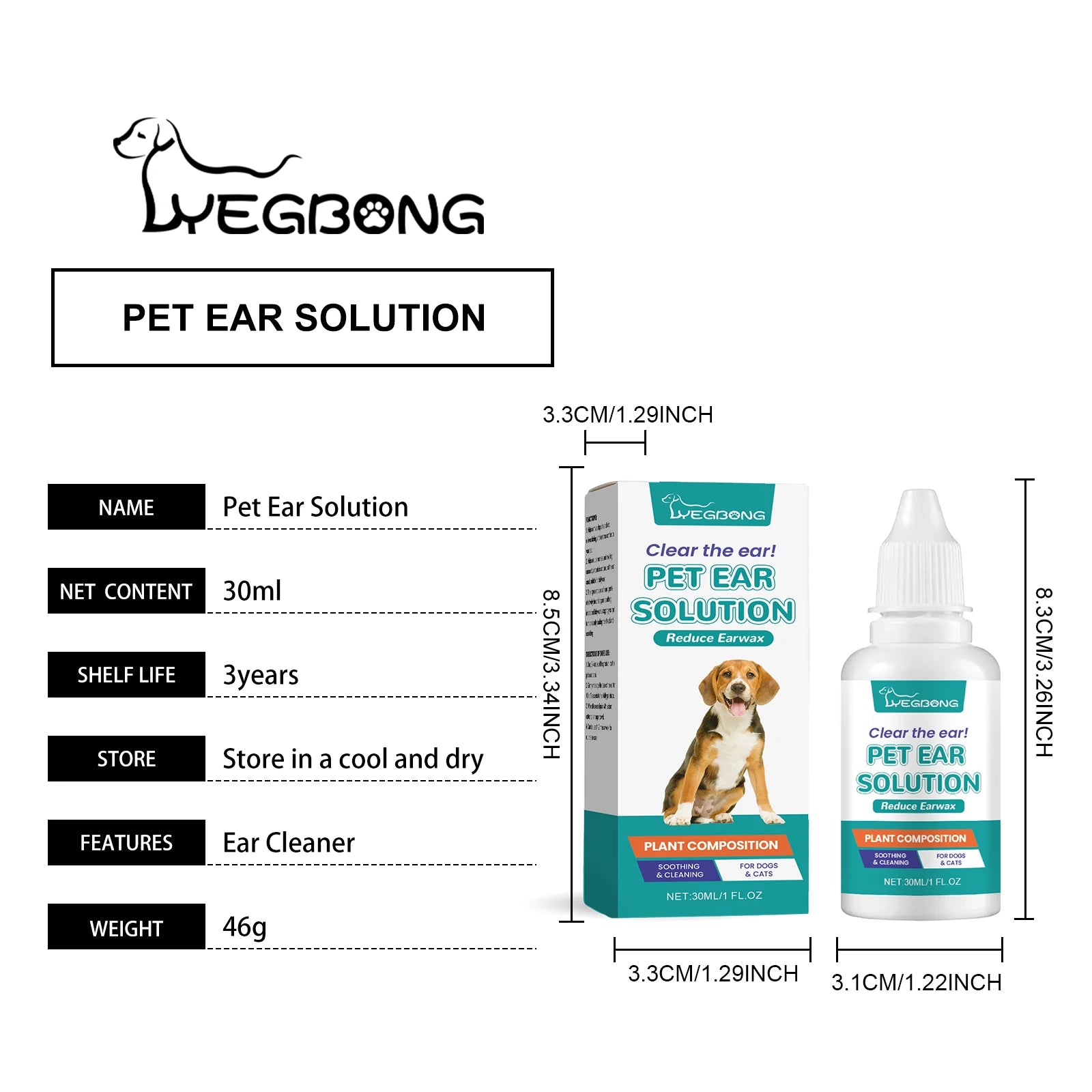 Yegbong 30ml Pet Ear Cleaner Drops Ear Mite Remove Relieve Itching Cleaning Earwax Buildup Nourish Dog Cat Ear Deodorant Drops